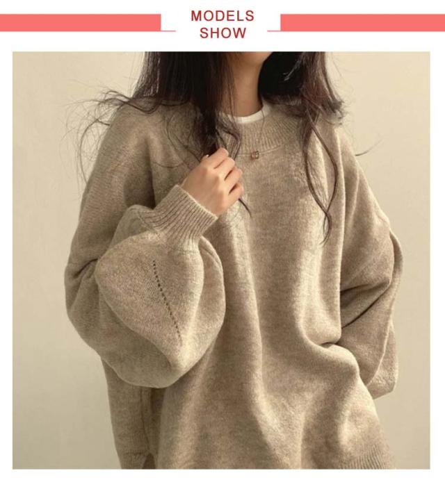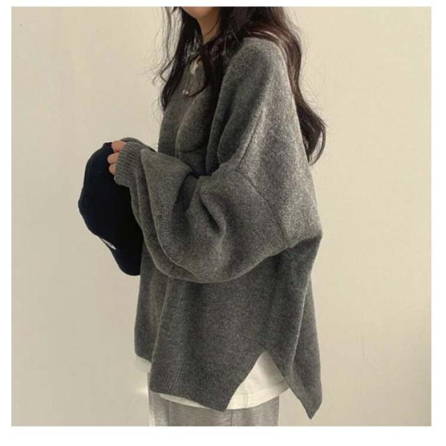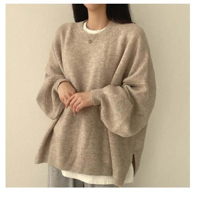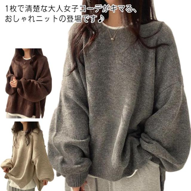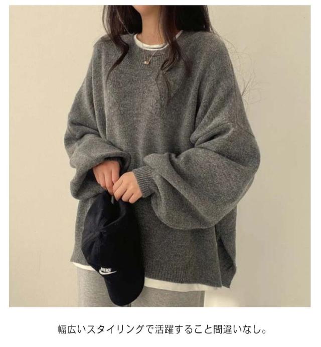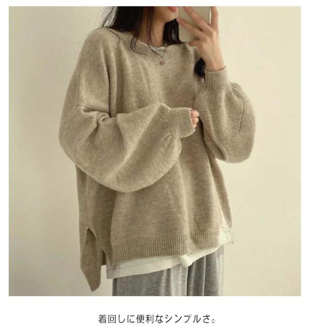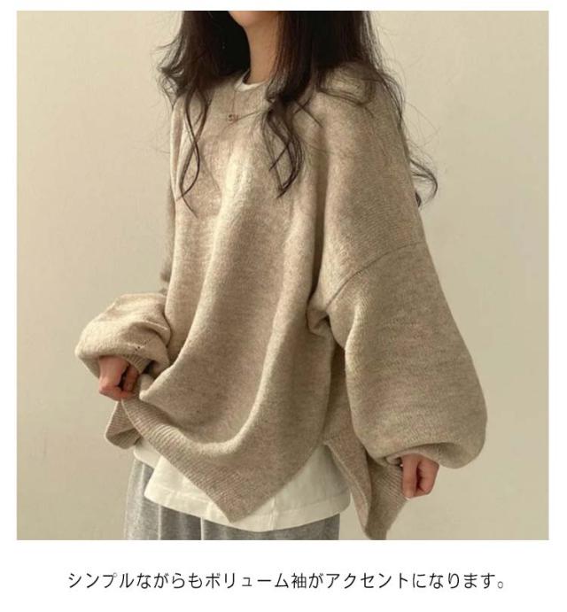 トップス レディース パフスリーブ チュニック ボリューム袖 ゆったり トップス セーター パフスリーブ シンプル ニットソー 体型カバー ニット 長袖 スリット入り フリーサイズ 無地 チュニック 着回し おしゃれ カジュアル 女性