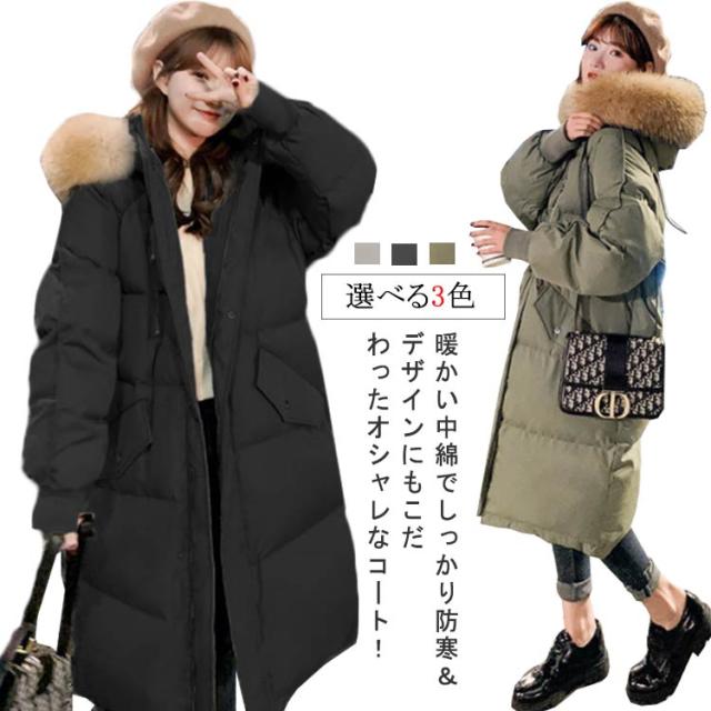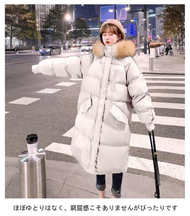 人気 膝下 可愛い 中綿コート アウター 冬 フード付き ボリューム 体型カバー ジャンパー 暖かい ロングコート ジャケット 韓国 ロング丈 ゆったり 軽量 防寒 光沢感 レディース バイク 送料無料 通勤 通学 秋冬 撥水 中綿コート 厚手 冬服 着痩せ