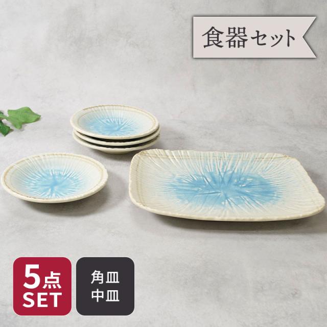 盛皿 & 取り皿 4人用 合計5点セット 雫 和食器 割引セット 送料無料 和食器 おしゃれ モダン 和モダン シンプル シック プレート お皿 皿 食器 小皿 大皿 ディナープレート ワンプレート 盛皿 パスタ皿 主菜皿 取皿 食器セット セット食器 ファミリー食器 引っ越し 新生活