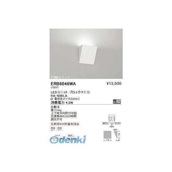 ED2205912 遠藤照明 ERB6046WA 片側配光ブラケット BLOCK70/3000K