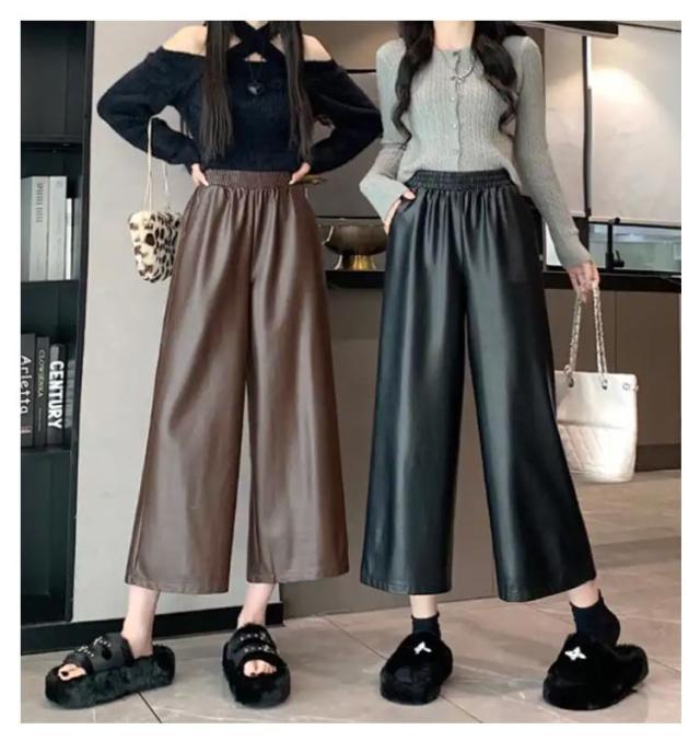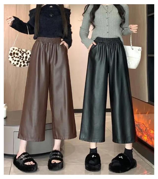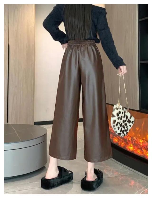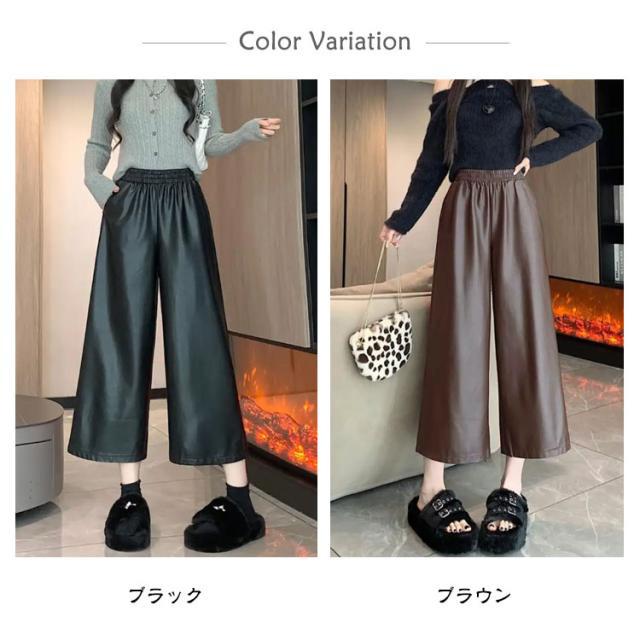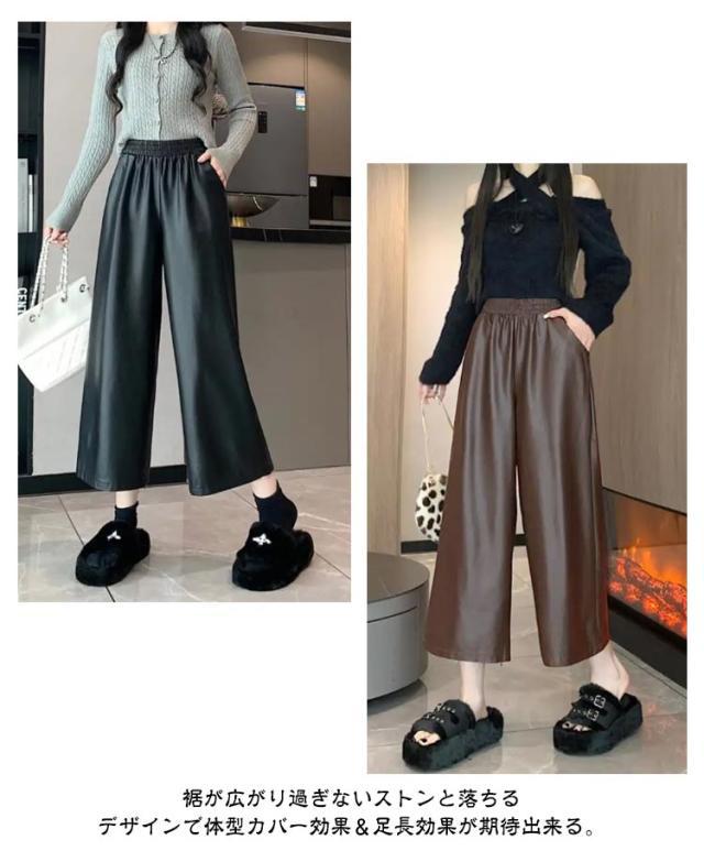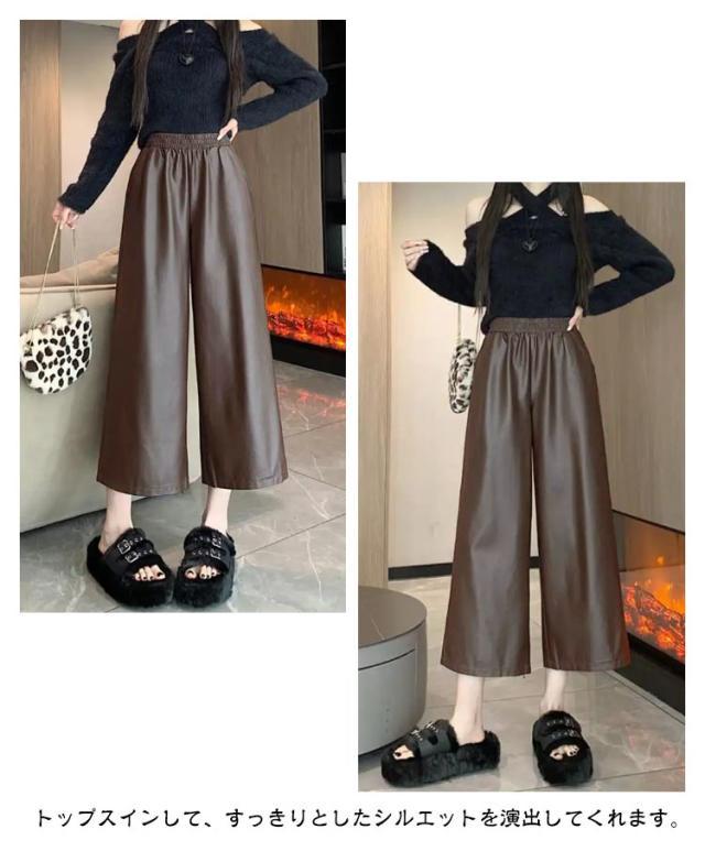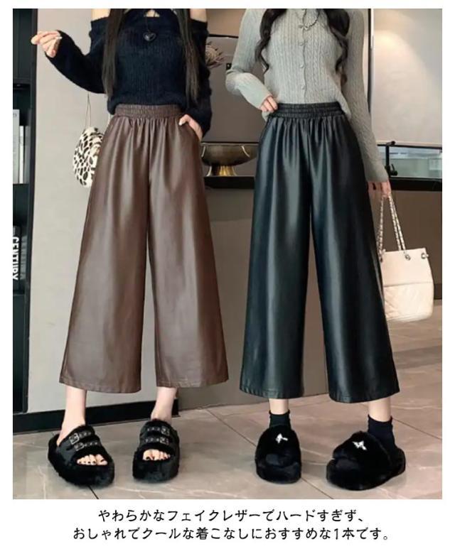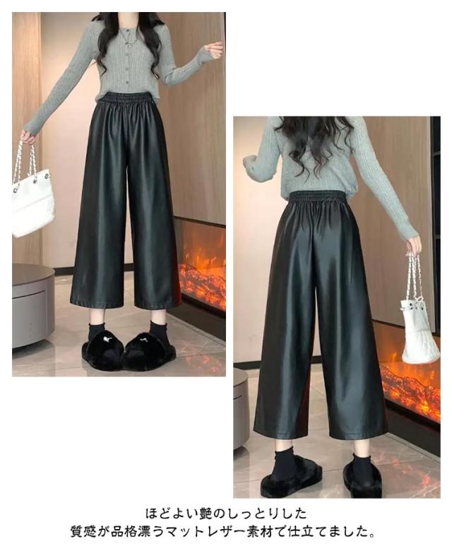 ガウチョパンツ レディース 9分丈 フェイクレザーパンツ ボトムス フェイクレザーパンツ フェイクレザー レザー ゆったり ワイドパンツ パンツ キレイめ カジュアル 合皮 体型カバー 秋 冬