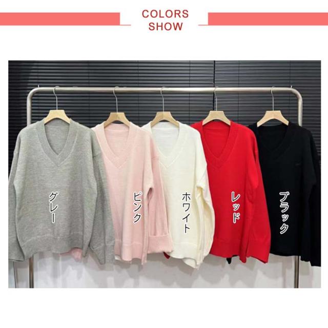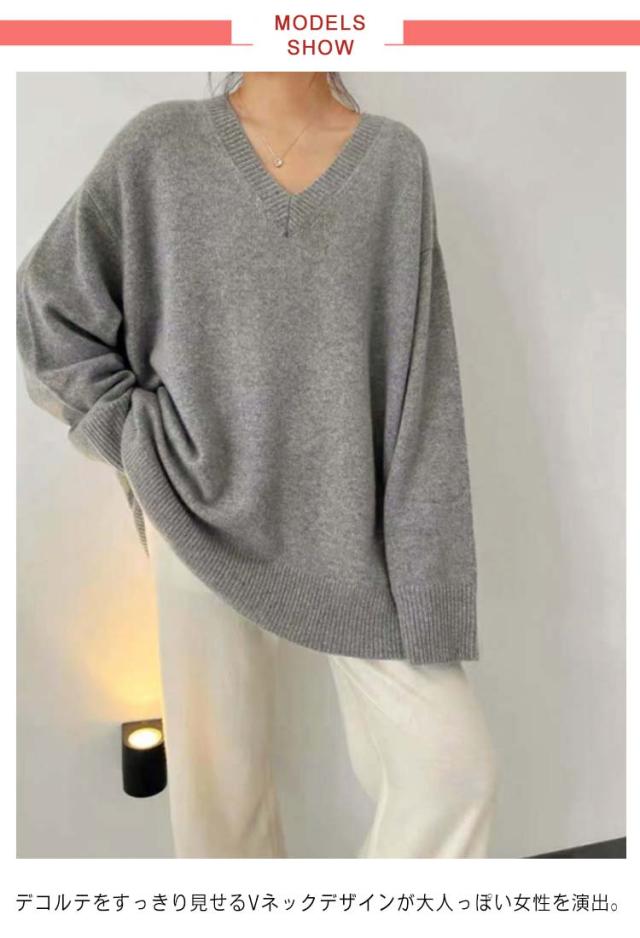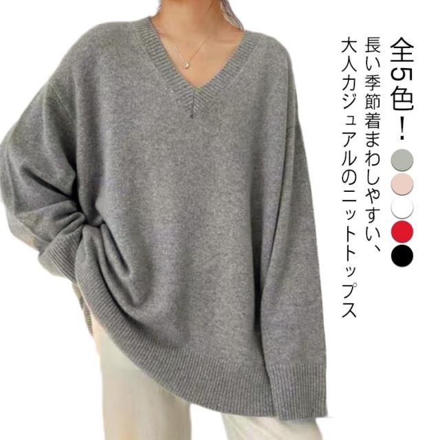 秋冬 シンプル Vネックセーター ニット Vネックニット ニット ロング レディース チュニック 可愛い ニットトップス ドルマンニット プルオーバー 着痩せ ゆったり 体型カバー 長袖 無地 大人 女性 カジュアル おしゃれ かわいい ギフト プレゼント