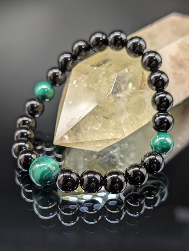 パワーストーン 天然石 モリオン マラカイト 孔雀石 8mm 親玉10mm 最高品質 鑑別済み ブレスレット 厄除け 強力守護 メンズ レディース