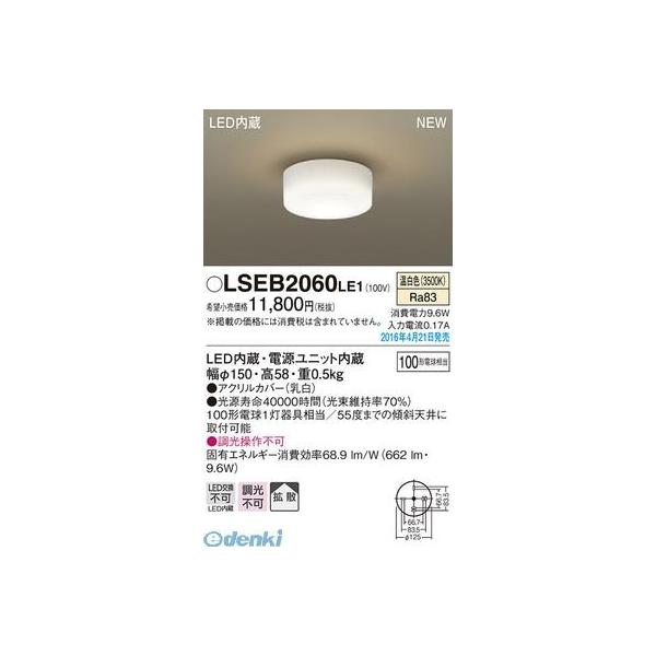 ED2155096 パナソニック LSEB2060LE1 LEDシーリングライト100形温白色 小型シーリングライト LED小型シーリングライト