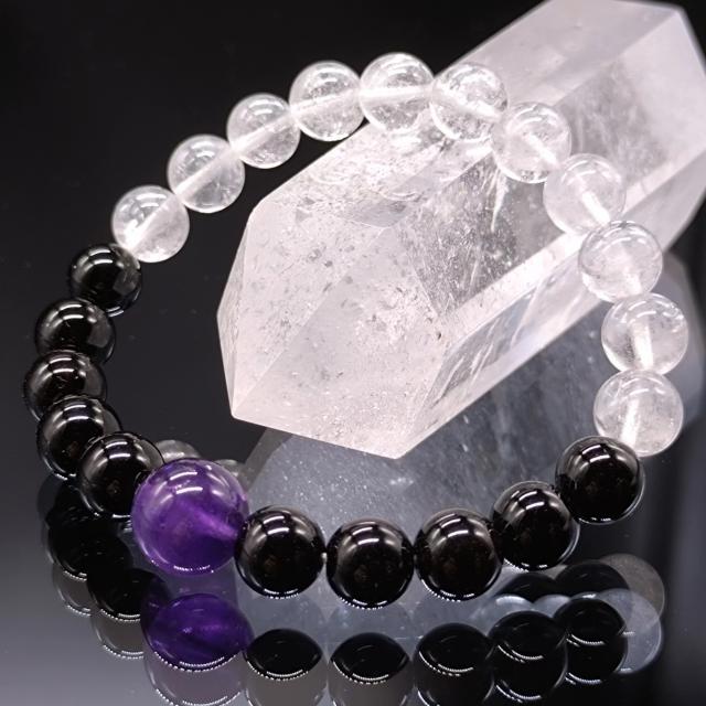 ヒマラヤ水晶とモリオンとアメジストのMIXブレスレットです。チベット産・ブラジル産になります。