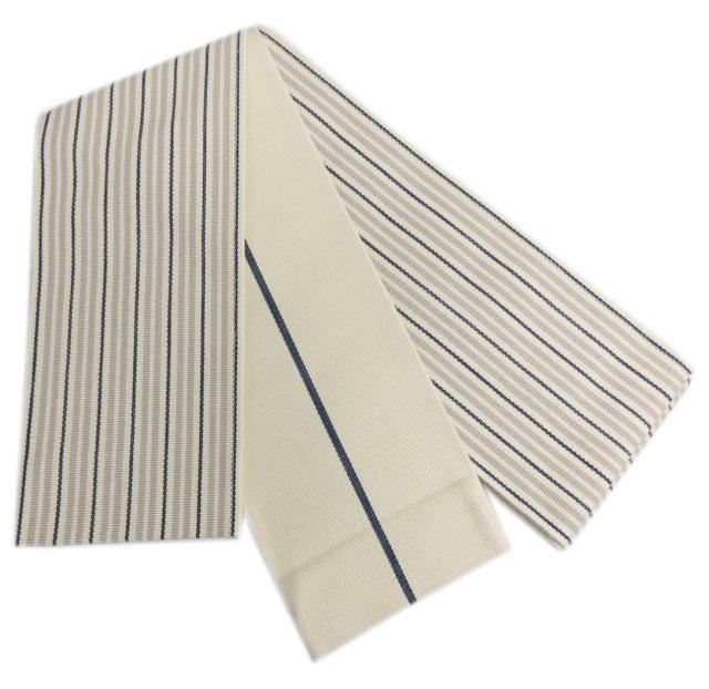 角帯 小袋 メンズ 男性 クリーム地グレー紺ライン 日本製 浴衣 着物 男物 紳士用 ゆかた きもの 和装 和服 古典柄 縞柄