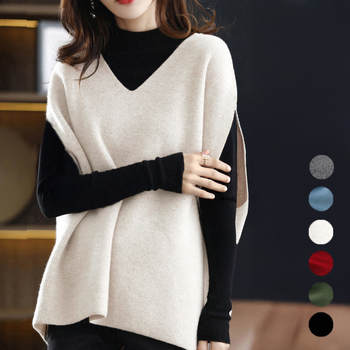 Vネック ニットベスト レディース ノースリーブ 開襟セータ
