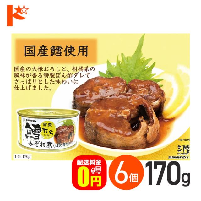 最大1000円OFFクーポン!3/12の9:59まで♪◇《送料無料》鱈みぞれ煮ぽん酢風味 缶詰 170g 6個 軽減8%