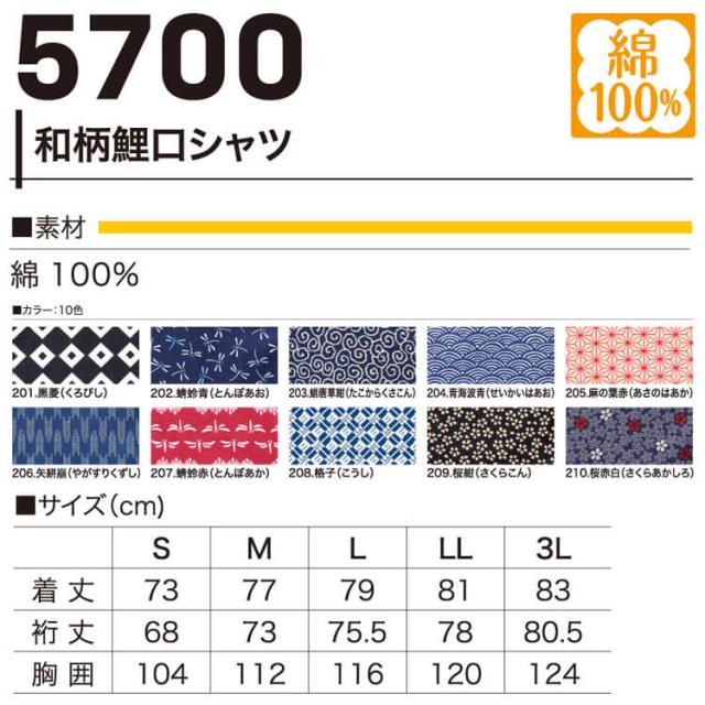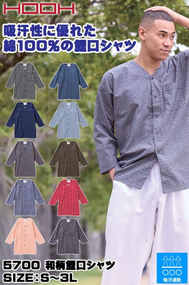 HOOH 村上被服 和柄鯉口シャツ 5700 祭り服 ダボシャツ 鳶職人 通年 S〜3Lサイズ