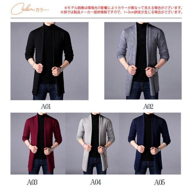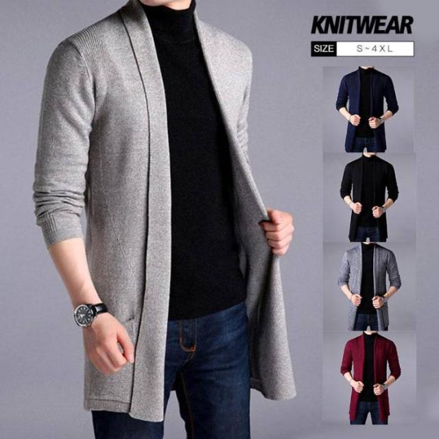 カーディガン メンズ 春服 薄手 ニットカーディガン ニットセーター 長袖 秋冬 カーディガン ジャケット ロング丈 ブルゾン 無地 前開 着痩せ