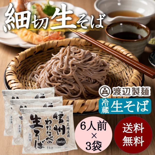 そば 蕎麦 信州そば 細切 生そば 1kg 6人前×3 業務用 大容量 渡辺製麺 製造直売
