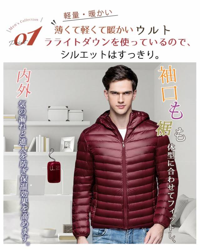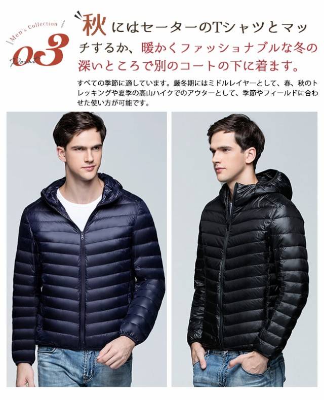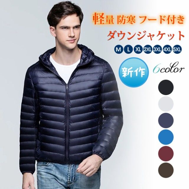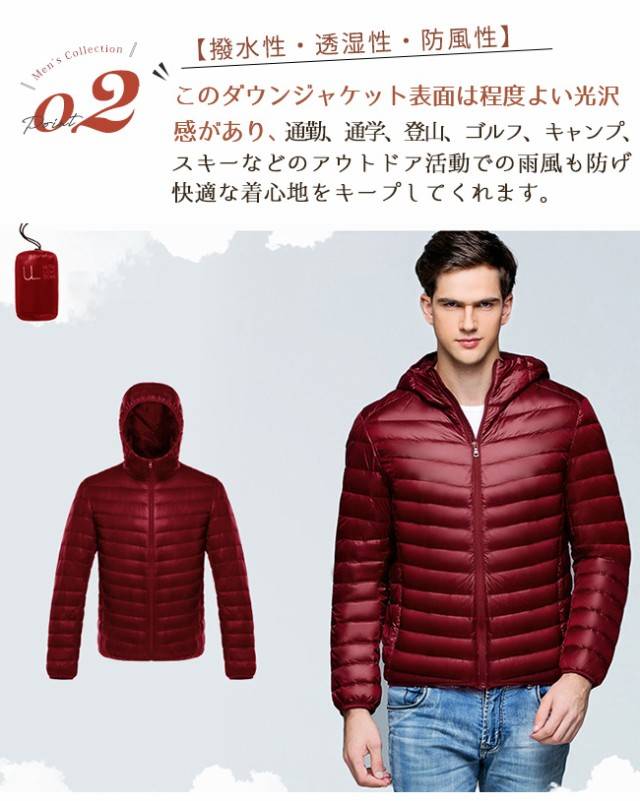 ダウンジャケット メンズ ダウンコート フード付き 軽量 防寒 防風 登山 暖かい 大きいサイズ ウルトラライトダウン ダウンパーカー 秋冬 ライトダウン