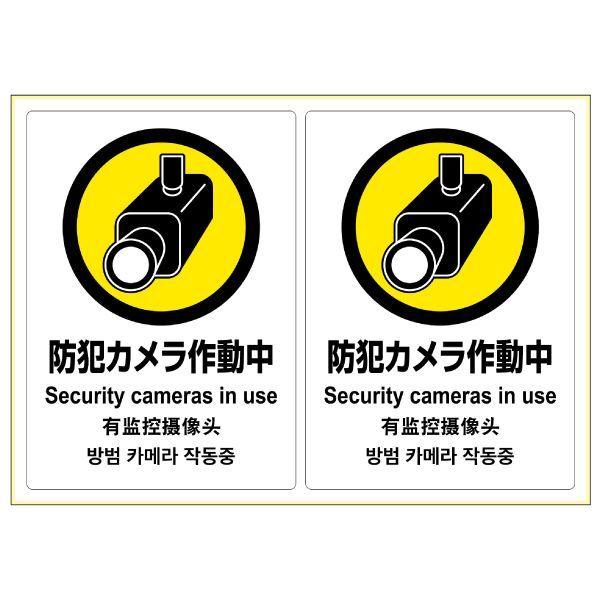 ヒサゴ KLS031 ピタロングステッカー 防犯カメラ A4 2面 HISAGO タテ2面 1シート 防犯カメラ作動中