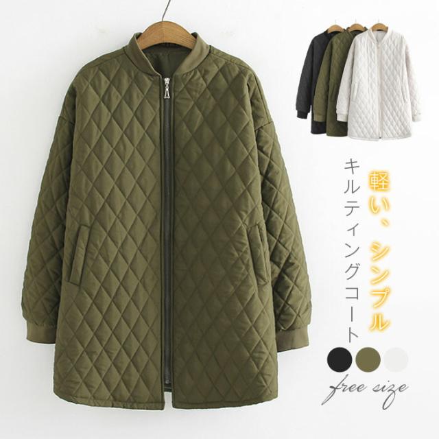 中綿ジャケット キルティングジャケット レディース アウター 軽量 無地 インナージャケット 冬 中綿入り コート 大きいサイズ 秋冬 ミドル丈 防寒 ジャンパー