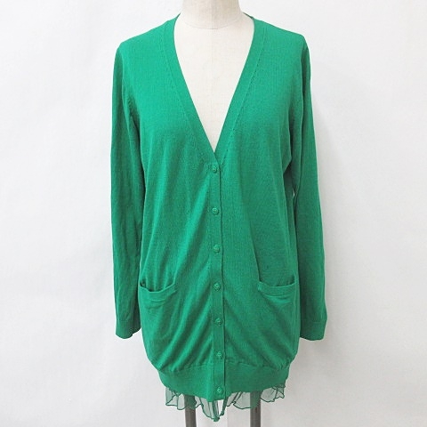 【中古】トラッゾドンナ ニット カーディガン ロング 長袖 Vネック 釦開き チュール フリル 緑 レディース