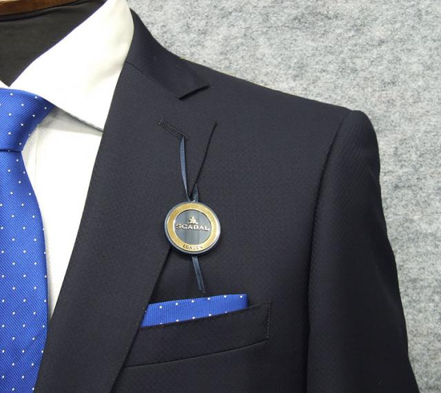 織ネーム(耳ネーム)を左胸内ポケットに、専用のロゴ入りジャガードを裏地に使用しています。