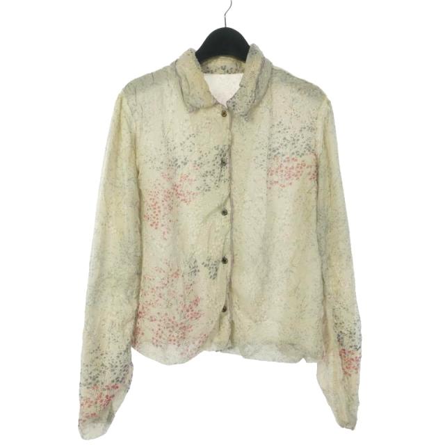 【中古】イオコムイオ io comme io シースルーシャツ 長袖 ボタニカル柄 花柄 40 グレー 01224224 レディース