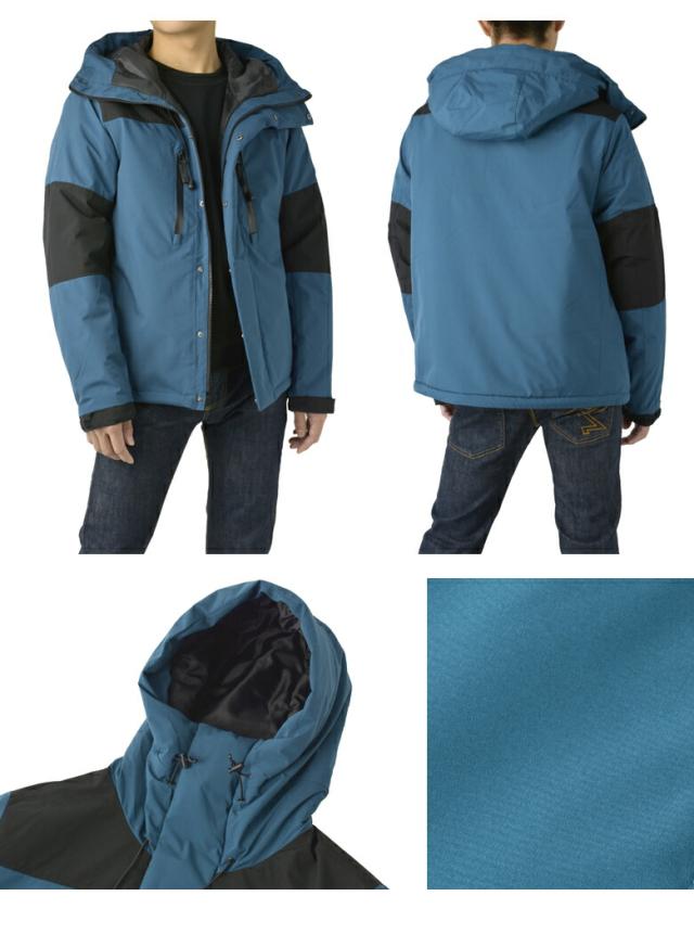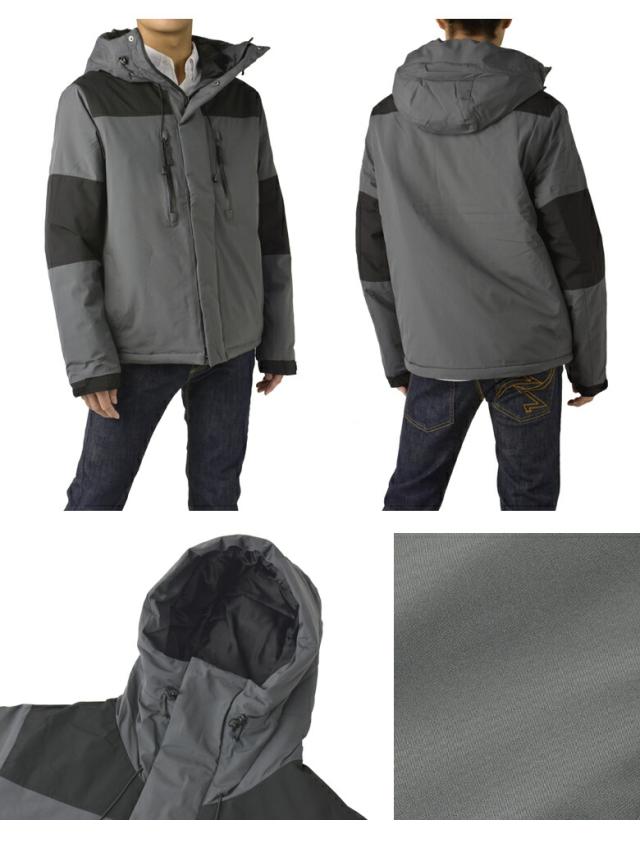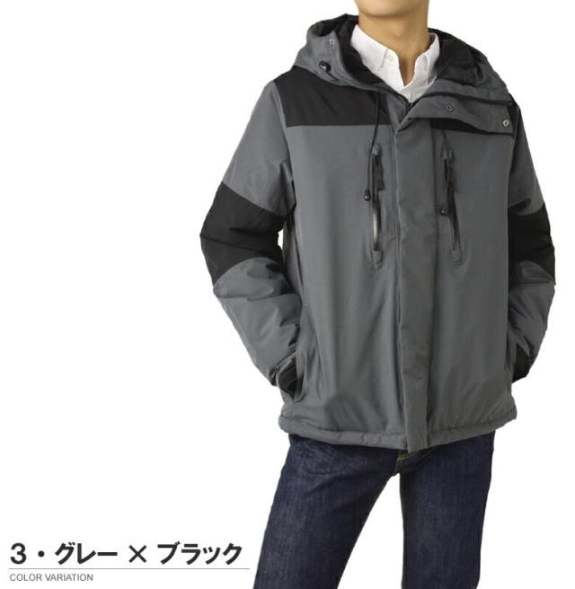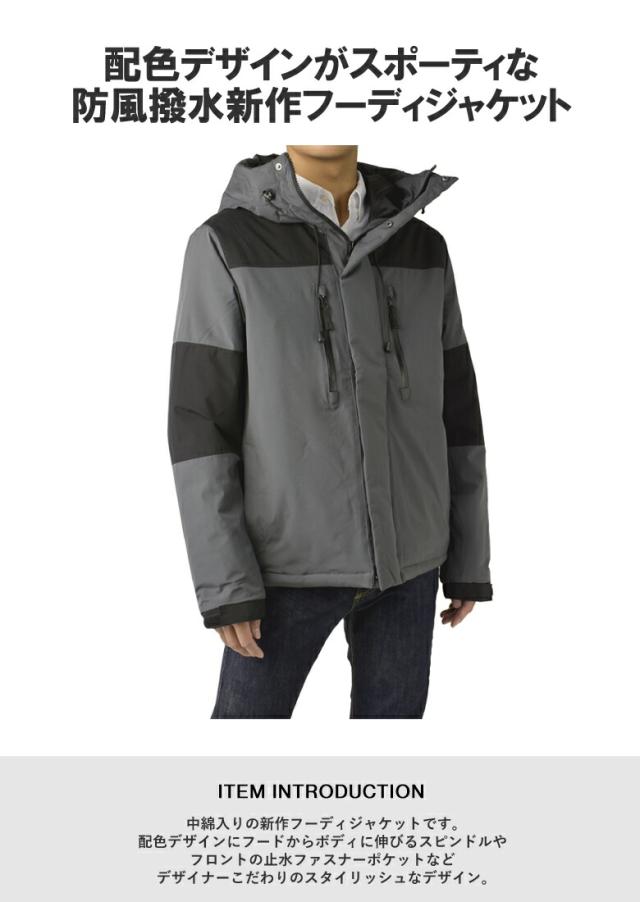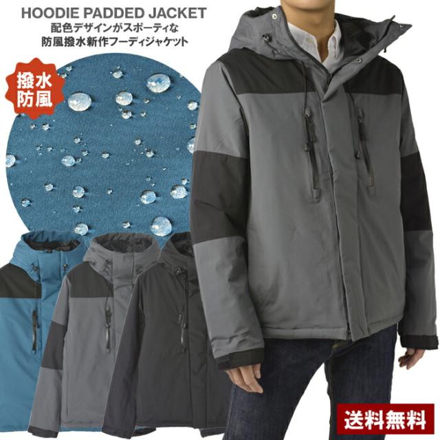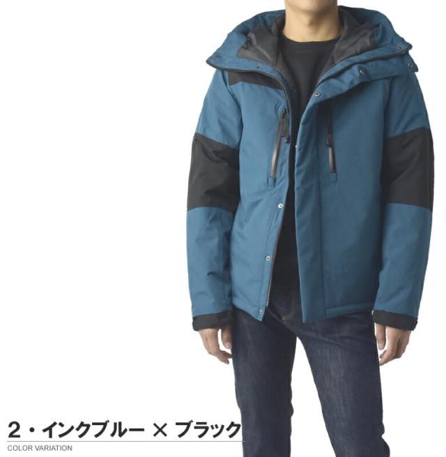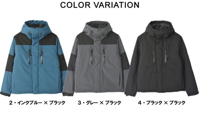 メンズ 撥水 防風 保温 配色切替 フーディジャケット ブルゾン 秋冬アウター 中綿ジャケット フェイクダウン 止水ジッパー ストレッチ ブルー グレー ブラック【B6E】