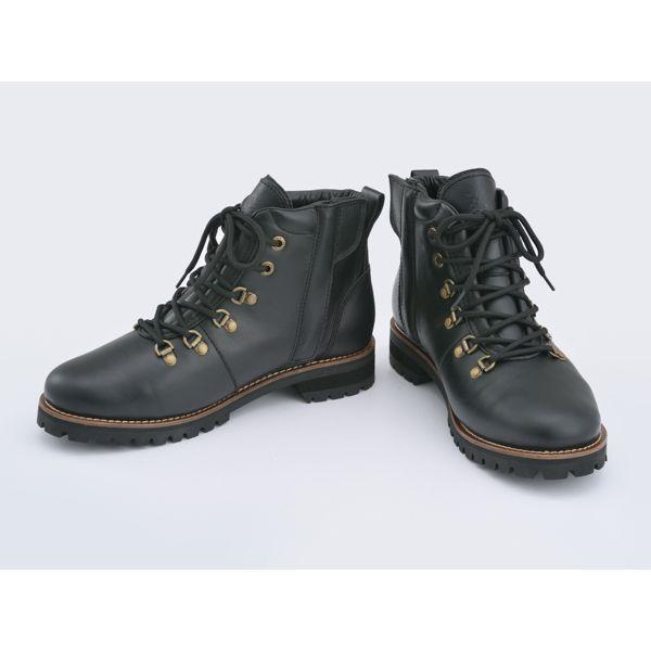 マウンテンブーツをモチーフとしたバイク用ブーツ。普段履きでも使えるアウトドアに適したデザインでバイク乗車を考えた機能を確保。脱着しやすいサイドファスナー式。シフトパッド、くるぶしパッド内蔵。ソールのステップ部に滑り止め加工。内側の金具はハトメに変更し愛車を傷から守ります。