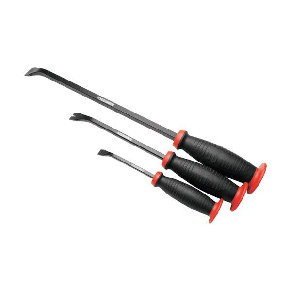 【特長】●ベルト張りや足回りの脱着など、広げる、こじる、抜く作業に使用できるバールセットです。●グリップは貫通なので、ハンマーで叩いての使用も可能です。●Mサイズの先端は、釘抜きにも役立つV型の形状です。●収納時に役立つ、先端を保護するキャップ付です。