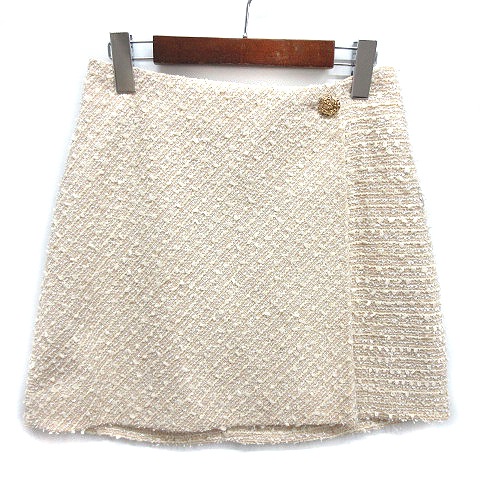 【中古】未使用品 スナイデル SNIDEL ツイード ラップ ミニ スカート 金ボタン アイボリー 1 SWFS224186 レディース