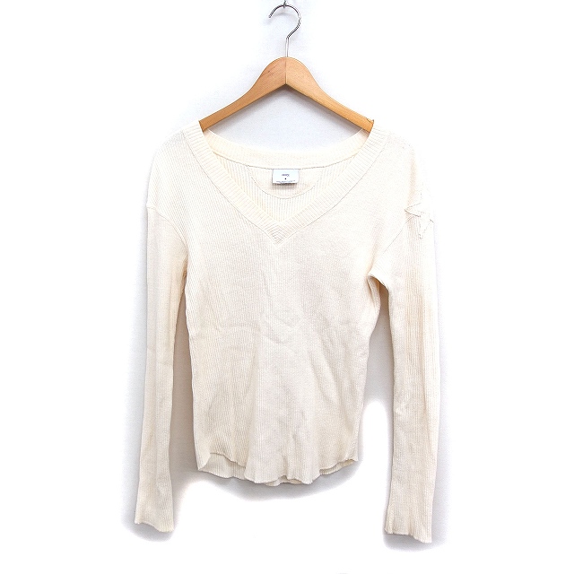 【中古】コンバース CONVERSE リブ ニット セーター 長袖 Vネック オールスター コットン 綿 オフホワイト 白 /FT33