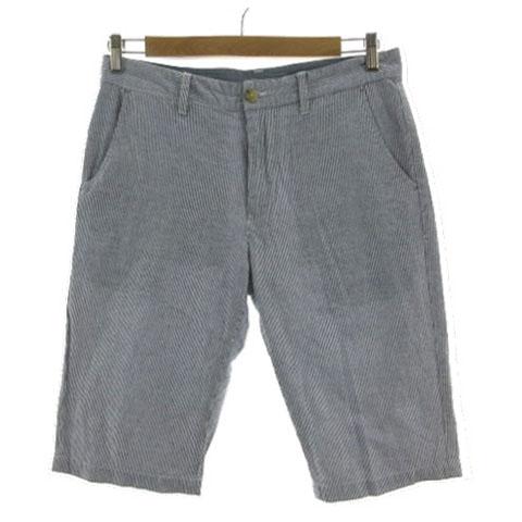 【中古】ザショップティーケー THE SHOP TK パンツ ショートパンツ リネン混 ストライプ ネイビー 紺 ホワイト 白 XL