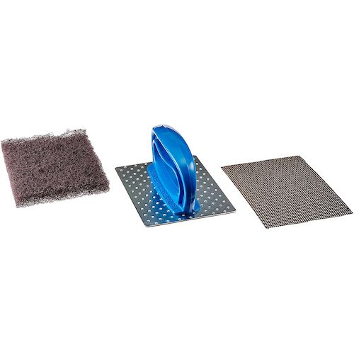 ●スクリーンの上に低温用パッドを重ね、ホルダーでおさえてグリドルをこすります。