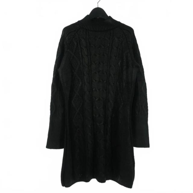 【中古】ザラウーマン ZARA WOMAN ケーブルニットワンピース ロング コーティング加工 モックネック XL ブラック 黒