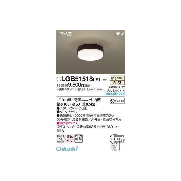 パナソニック LGB51518LE1 LEDシーリングライト(温白色)60形 Panasonic LED小型シーリングライト