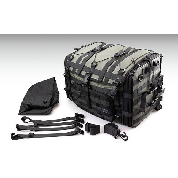 2泊以上のツーリングやキャンプに最適なサイズ感。多種多様な使い方ができ、予想外のお土産や買い物に対応可能な容量UP機能付。また、モールシステムによりPALS対応ポーチなどのタクティカルアクセサリーの装着が可能です。さらに、急な雨でも安心のレインカバーも付属しております。