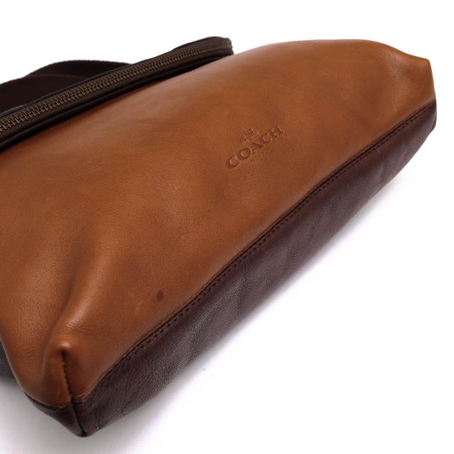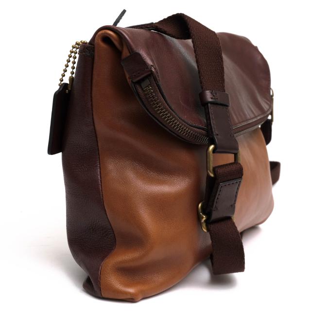 カジュアルスタイルに、大人らしい男っぽさをプラスしたい人にぴったりのCOACHのレザーバッグ。口折れタイプのデザインは、ジップ引き手にレザーをプラスして、さりげなく高級感を高めています。ストレート仕様にすれば、A4サイズも入る大きさに。背面のスリットポケットに配置したファスナーは荷室に直接アクセスでき、中身の出し入れもスムーズに。ヴィンテージ感漂う2色使いのレザーが、ハードな男っぽさを演出してくれます。またショルダーストラップを外せばクラッチ、セカンドバッグとしてもご使用できるスグレモノです。