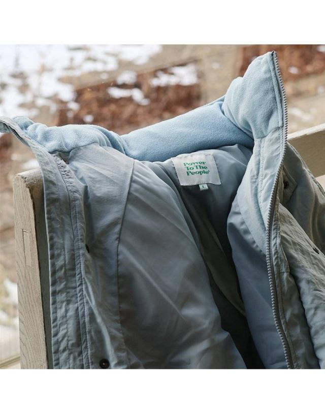 1.ネックのフードをしまったスタイリッシュな着方。