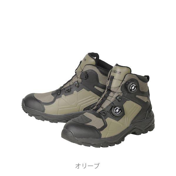 ●透湿防水フィルム[ヴォクサーム]を採用。くるぶしパッド、ヒールガードを装備し安全面を考慮。二層構造のソールで軽さと衝撃吸収を実現したアウトドア感溢れるライディングシューズ。