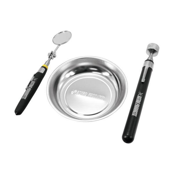 【特長】●作業時に役立つ、マグネットトレー、マグネットピックアップバー、インスペクションミラーの3種類の工具セットです。