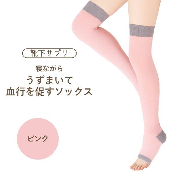オカモト 靴下サプリ 寝ながらロングうずまいて血行を促すソックス 23〜25cm ピンク レディース 着圧 ソックス ロング おやすみ用 就寝用