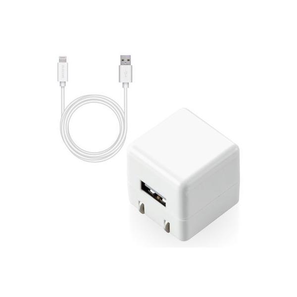 エレコム ELECOM MPA-ACL05WH iPhone充電器 iPad充電器 Lightning AC ケーブル同梱 ホワイト コンパクト 小型