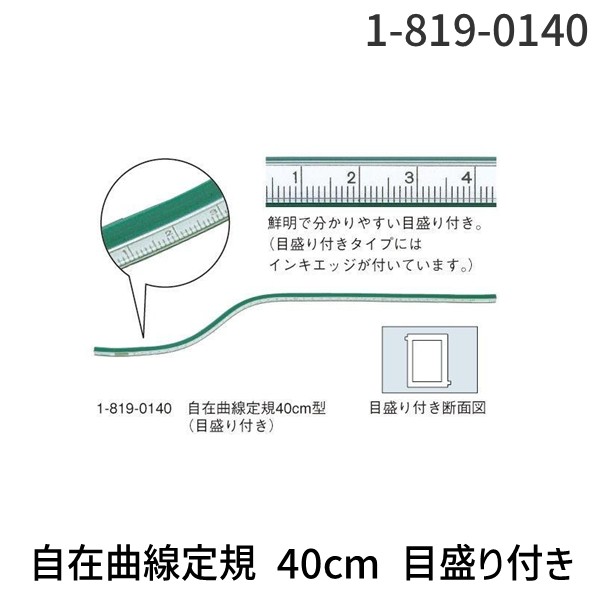 ED2102032 ウチダ 1-819-0140 自在曲線定規 40cm 目盛り付き 18190140
