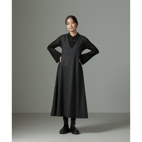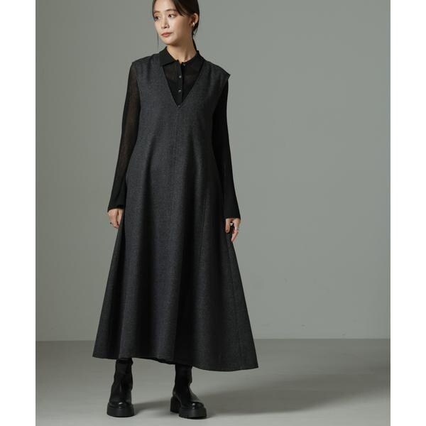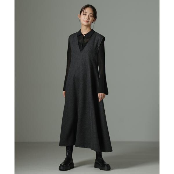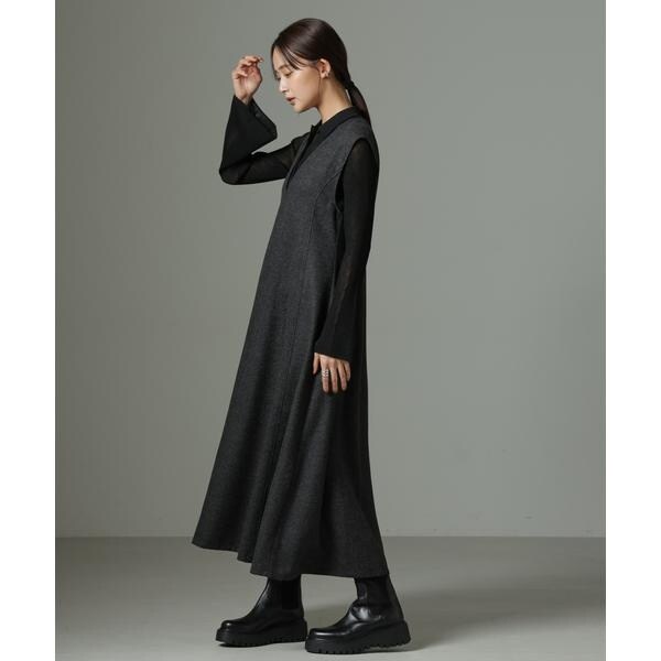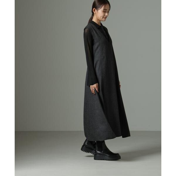 中に合わせるインナーしだいでロングシーズン着回せるワンピース。今年らしいレイヤードのコーディネートで着回しが効き、幅広い着こなしが楽しめる一枚。ブーツとも相性が良い着丈で、キレイ目にもカジュアルなスタイルにもおすすめです。