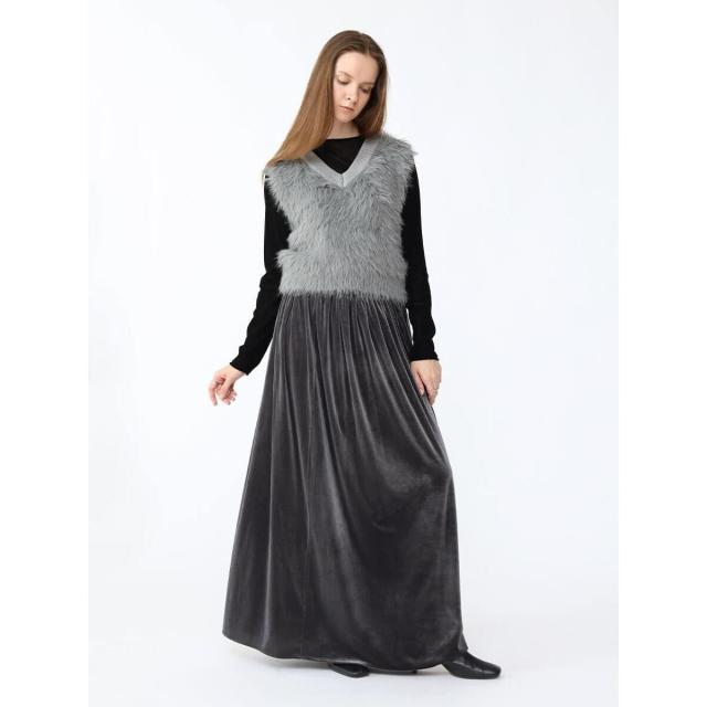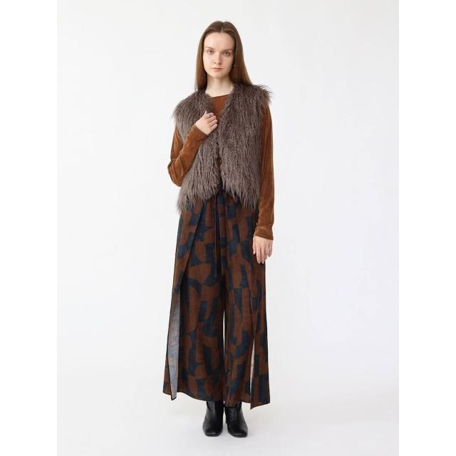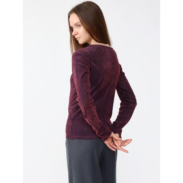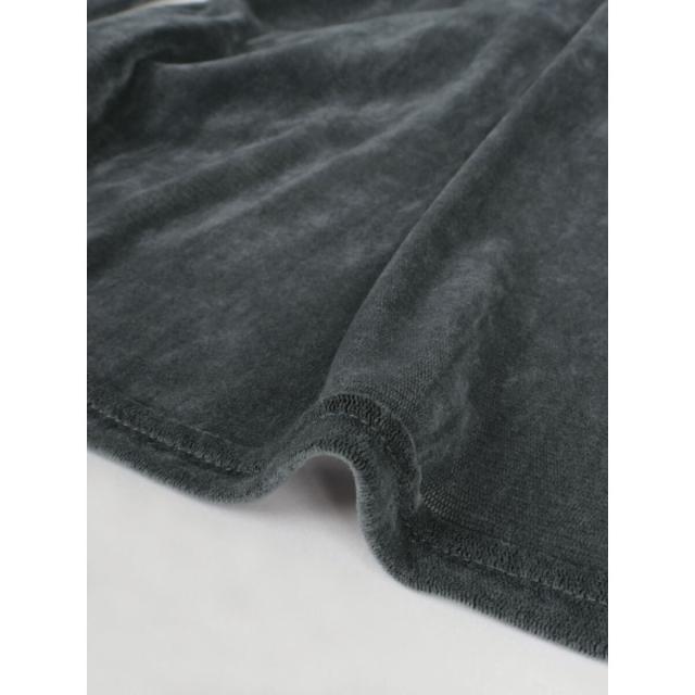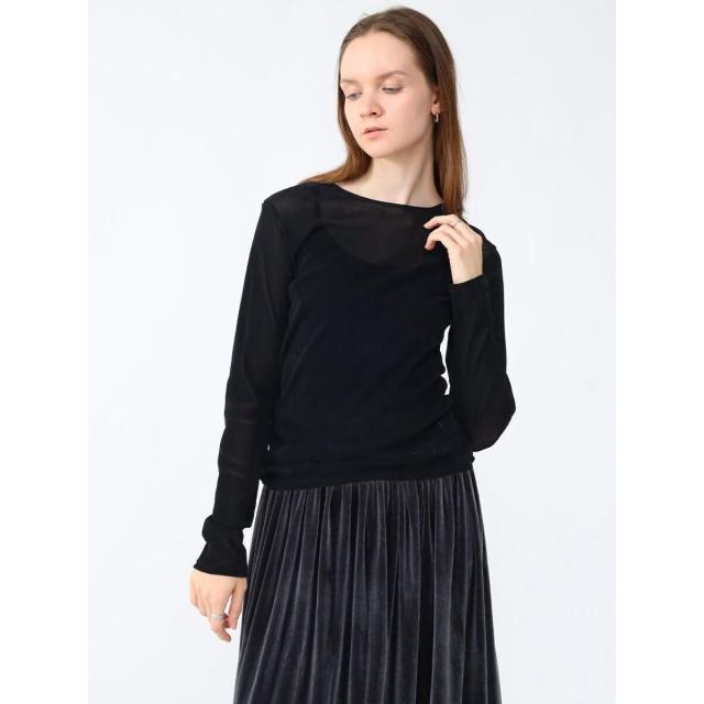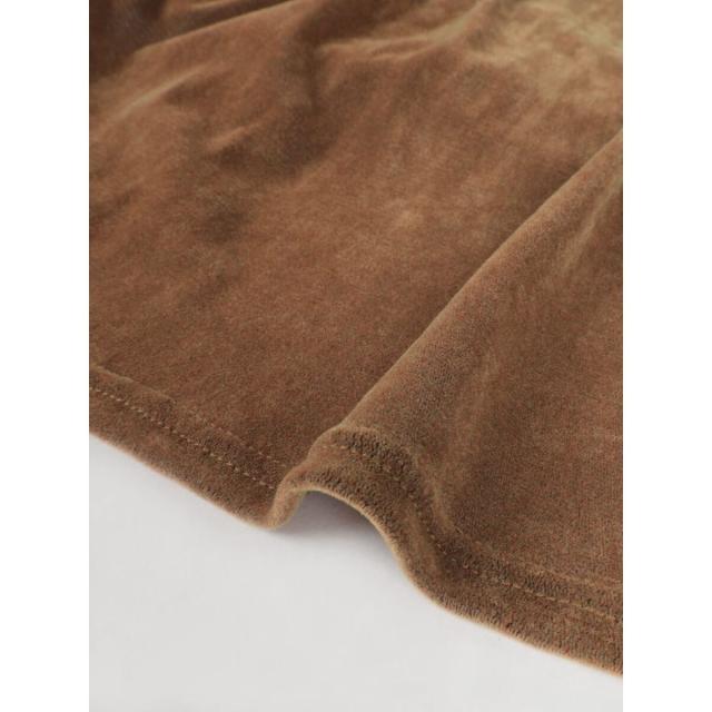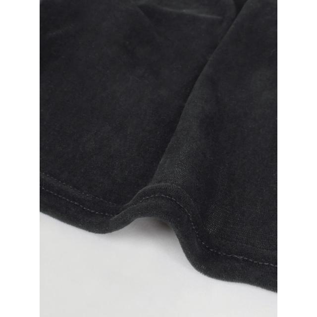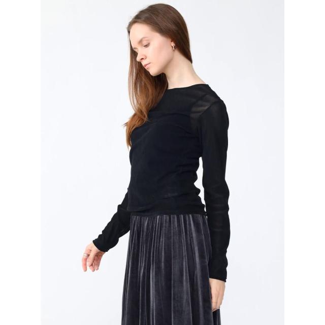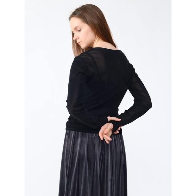 全面にフロッキープリントを施すことでベロアのような艶やかな表面感を演出。チュールにフロッキープリントの起毛加工を施した生地は、秋冬らしい重めの印象ながら仄かな透けがありベロア生地より軽やかな印象に。蒸れにくく、伸縮性がありソフトな生地はレイヤードにぴったりな一着です。