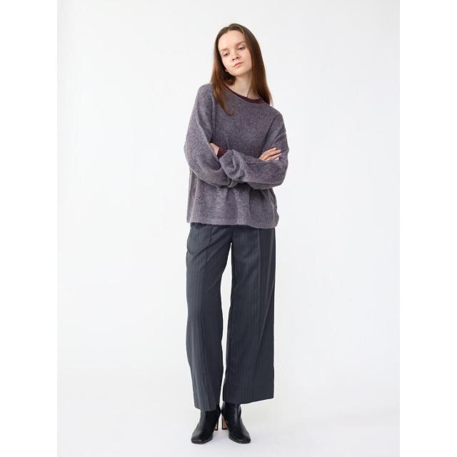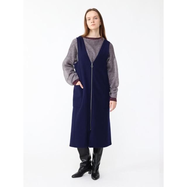 秋の訪れを感じさせる上品な素材を生かすためシンプルなデザインに。長めの袖口が手首を華奢に魅せ、すっきりとしたネックで女性らしく。奥行きのある色味で平面に見えないような仕上がりに。ゆったりとしたシアーニットやワンピースとレーヤードをすることで女性らしいしなやかなスタイルが完成します。