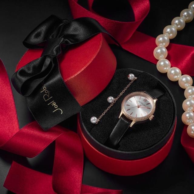 本商品にはホリデーシーズンのギフトにおすすめな、大きいリボンが目を惹くオリジナルギフトボックスと、時計と合わせて楽しめるパールビーズが6粒連なるオリジナルブレスレットが付属します。