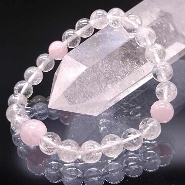 パワーストーン ヒマラヤ水晶 モルガナイト 8mm 親玉10mm ブレスレット 開運 心願成就 浄化 天然石 メンズ レディース