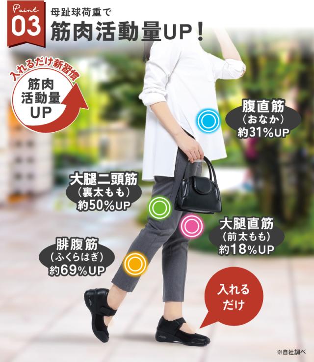 普段の靴に入れるだけでいいので、いつもの歩行がフィットネスに変わります。