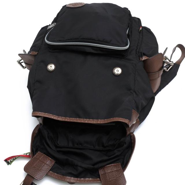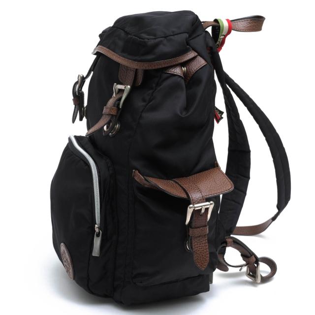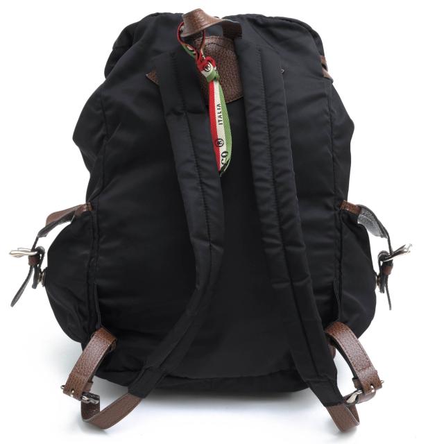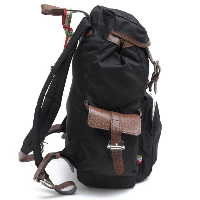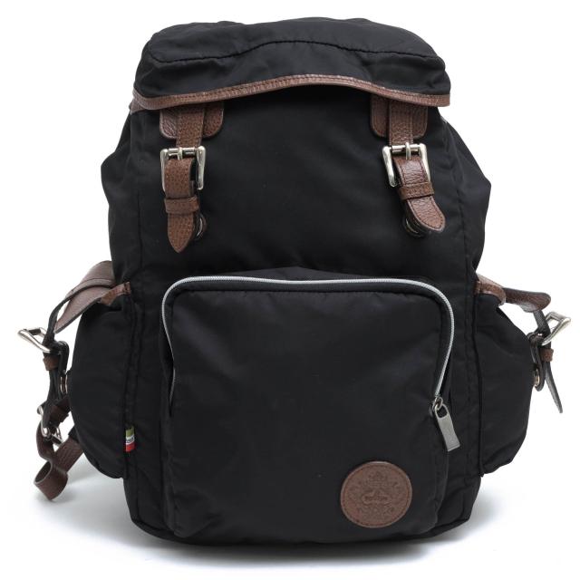 リモンタナイロンに牛革を合わせた大きめのバックパック。落ち着いた雰囲気で、高級感があります。サイドにはイタリア国旗カラーのタグ、フロントにはブランドロゴ金具が付きます。ポケットも充実してます。普段使いにはもちろん、旅行にも最適です。