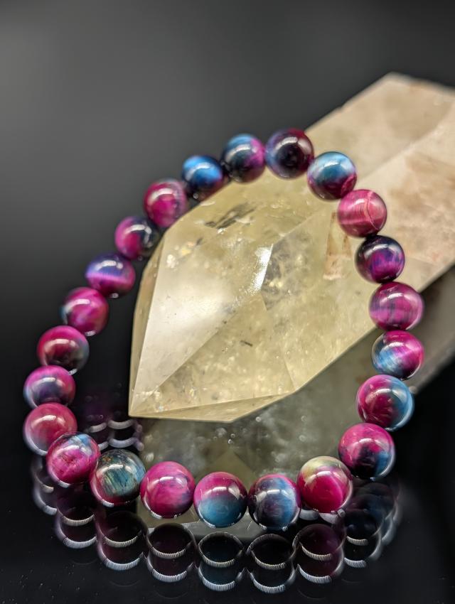 パワーストーン タイガーアイ ピンクブルーグリーン MIX 8mm ブレスレット 虎目石 金運 守護 天然石 メンズ レディース