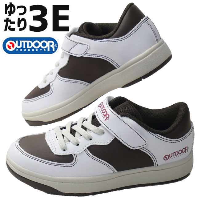 スニーカー ローカット キッズ ジュニア 男の子 女の子 SS 春夏 新作 夏新作 秋新作 人気 流行 定番 2025 アウトドアプロダクツ OUTDOOR PRODUCTS ODP 201 KE77011 ワイズ3E ベルクロ カジュアルシューズ ホワイト/ブラウン マジックテープ 子供靴