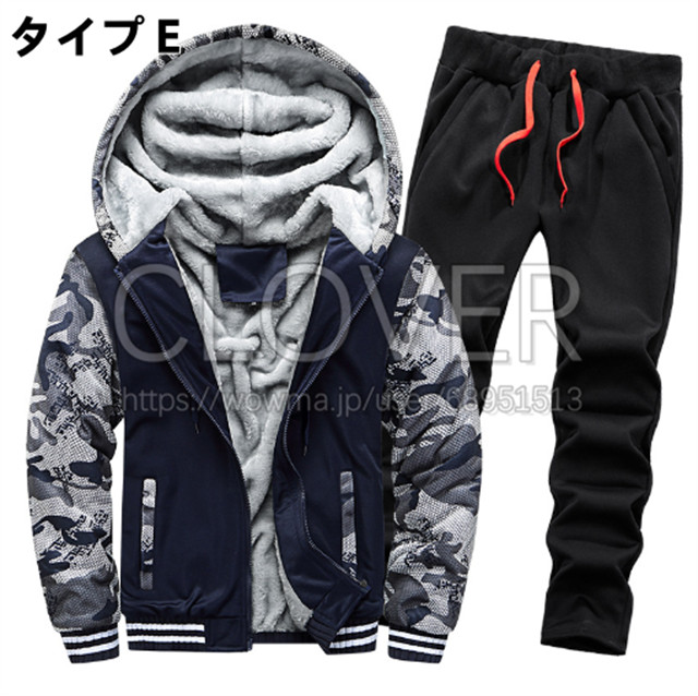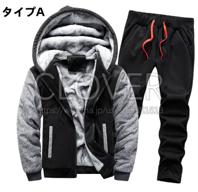 ジャージ 上下セット メンズ スウェット 裏起毛 アウター ロングパンツ セットアップ フード付き 部屋着 冬用 厚手 防寒 アウター ルームウェア カジュアル 大きいサイズ