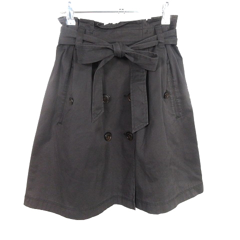 【中古】ミミ&ロジャー スカート フレア ひざ丈 タック リボン コットン 薄手 無地 0 チャコールグレー レディース
