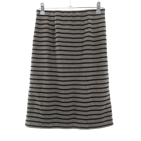 【中古】レプシィム ローリーズファーム スカート タイト ひざ丈 薄手 タック ボーダー M グレー レディース